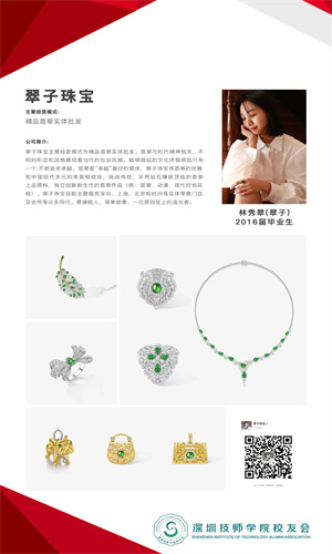 参展的校友展出的产品均为个人原创作品,包括翡翠玉石、彩宝镶嵌、时尚k金、文化创意、高级定制等类别。