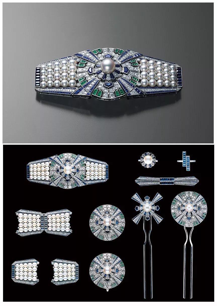 日本著名珠宝品牌御木本(MIKIMOTO)的“矢车和服扣” 是一枚和服扣,可以拆分成12件单独的首饰,分别是心口针、戒指、胸针等,无论拆分还是组合都非常自然、协调,是御木本的代表作。